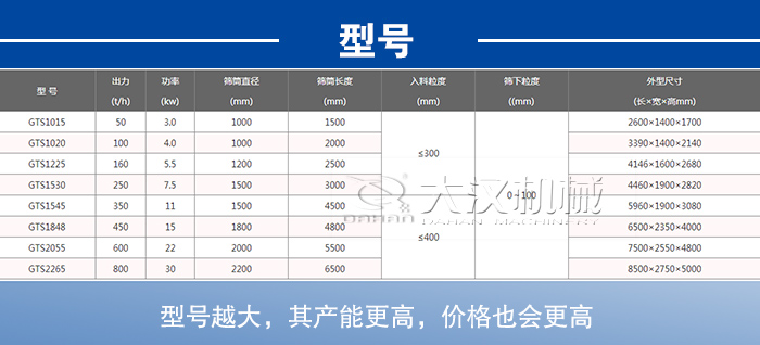 移動式滾筒篩型號非常齊全,主要包括:YTS1030、YTS1040、YTS1230 YTS1240、YTS1250、YTS1530、YTS1540、YTS1550、YTS1560、YTS2040、YTS2050、YTS2060等,這幾種型號移動式滾筒篩的尺寸、重量、電機(jī)功率等均有差異,從前至后,型號越來越大,體積、產(chǎn)能等也隨之增長,同時移動式滾筒篩價格也會呈上漲趨勢,客戶購買時應(yīng)有所注意,客戶可在更大范圍內(nèi)選購更適合自己設(shè)備,不過型號越大,其產(chǎn)能更高,價格也會更高。
