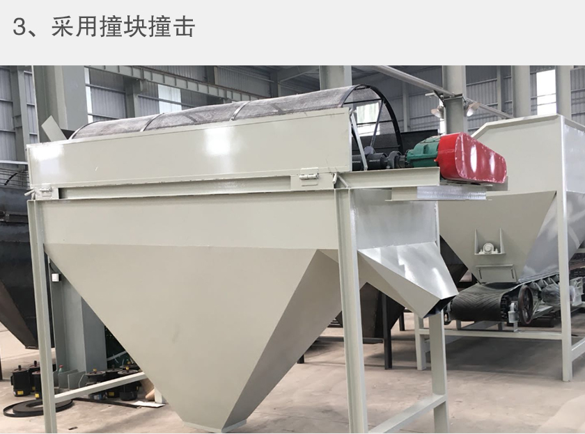 滾筒篩堵網還可以采用撞塊撞擊,但是這種方法需要足夠大的支撐圓環軸套的壁厚,以保證滾筒篩能承受撞塊在清除物料堵塞時的撞擊力。
