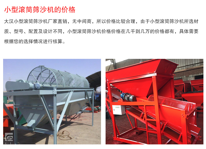 大漢小型滾筒篩沙機廠家直銷,無中間商,所以價格比較合理,由于小型滾筒篩沙機所選材質、型號、配置及設計不同,小型滾筒篩沙機價格價格在幾千到幾萬的價格都有,具體需要根據您的選擇情況進行核算。