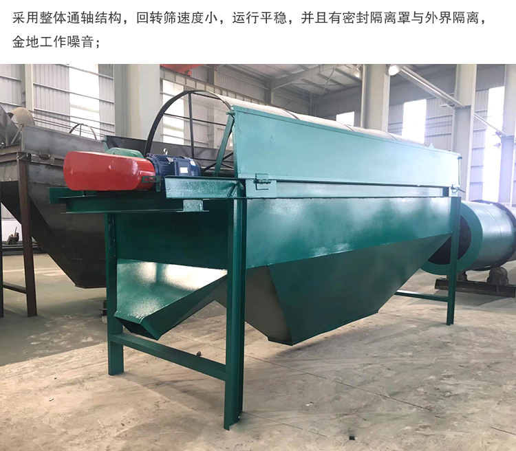 有機肥滾筒篩分機可以用戶除雜和大小分級,主要用于化肥、尿素、菜籽餅、芝麻餅、堆肥、沼肥等各種有機肥料的處理。