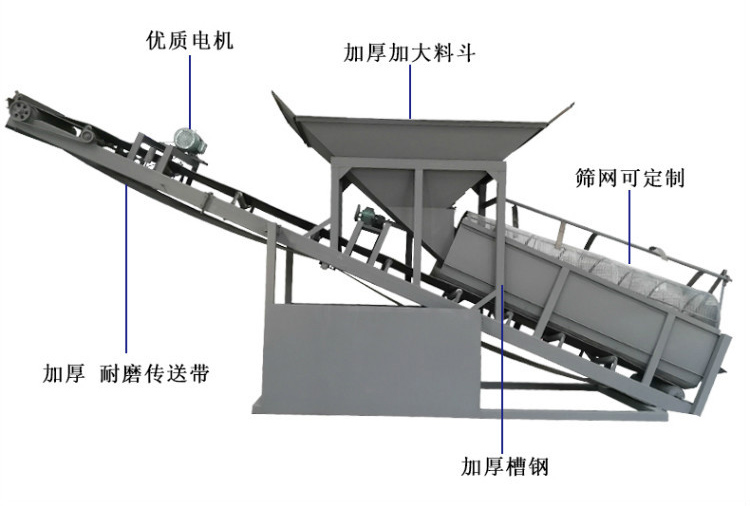 石料場中用于大小石子分級以及分離出泥土和石粉。