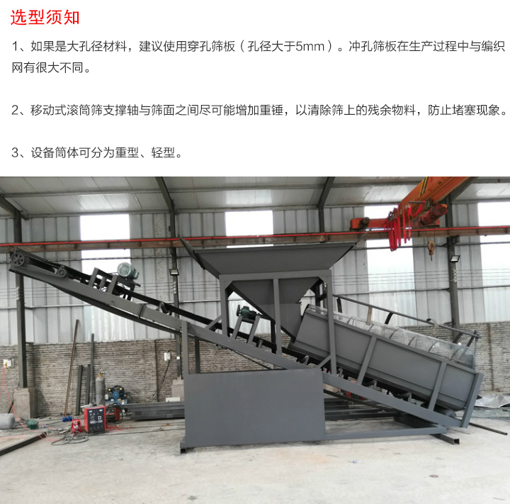 2、移動式滾筒篩支撐軸與篩面之間盡可能增加重錘,以清除篩上的殘余物料,防止堵塞現象。
