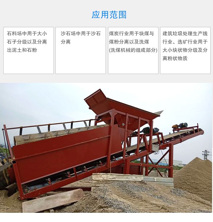 建筑垃圾處理生產線行業、選礦行業用于大小塊狀物分級及分離粉狀物質。