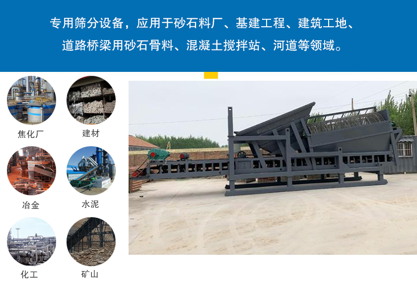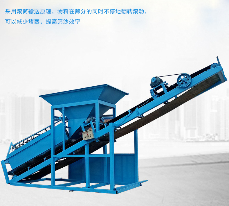 1、采用滾筒輸送原理,物料在篩分的同時不停地翻轉(zhuǎn)滾動,可以減少堵塞,提高篩沙效率。